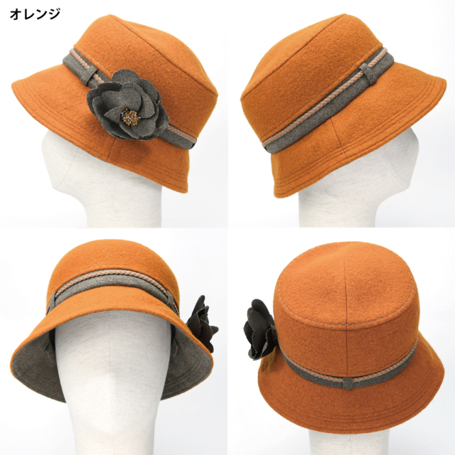 ループに通すコサージュがアクセントになっています。華やかなオレンジとベーシックなグレーをご用意しました。